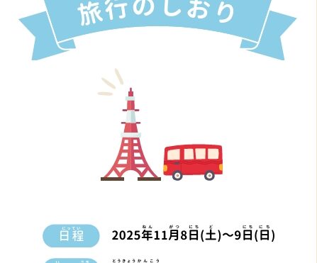 雇用支援センターきらっとでは、卒業された方々向けにさまざまなイベントを企画しています。 この11月8日~9日は、久しぶりの1泊2日の旅行を企画しました。 今回は「東京バス観光&東京ディズニーランド」の旅です。 2 […]